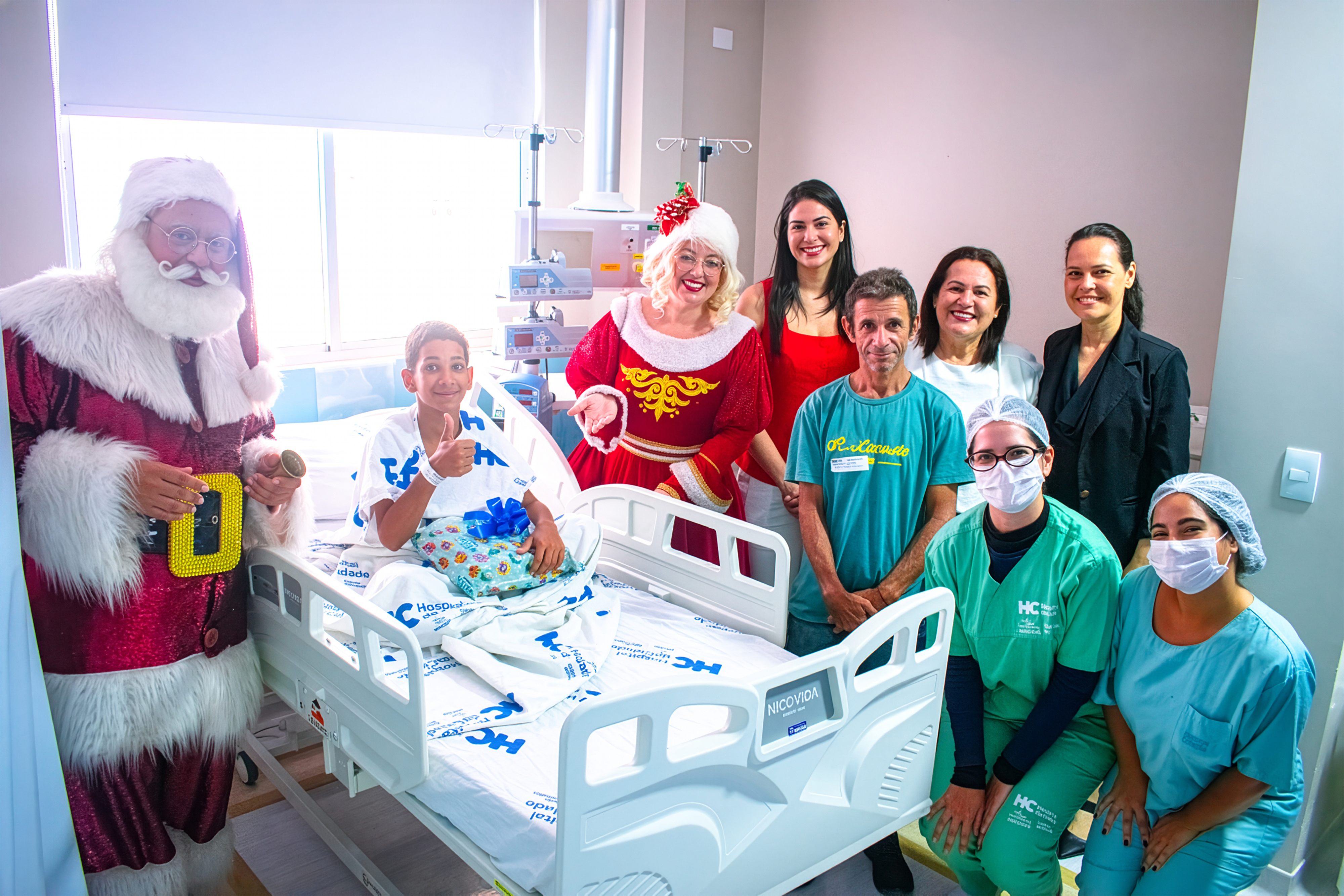 Papai e Mamãe Noel entregam presentes para crianças internadas no Hospital da Cidade
