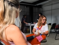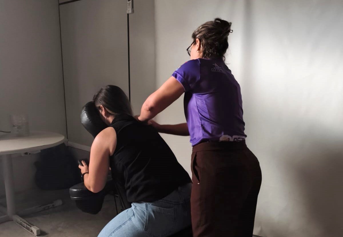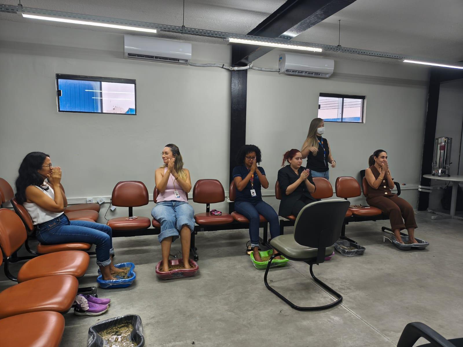 Durante a ação, os servidores participaram de atendimentos em auriculoterapia, ventosaterapia, massagem relaxante, escalda-pés e aromaterapia, vivenciando momentos de relaxamento e conexão com o próprio corpo.