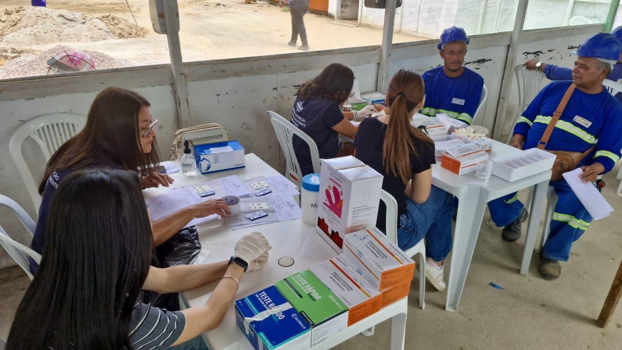 Durante a manhã, mais de 100 testes rápidos para HIV, sífilis e hepatites foram realizados entre os trabalhadores da obra. Além da testagem, a equipe distribuiu insumos de prevenção, como preservativos e material informativo, e reforçou orientações sobre prevenção combinada, autocuidado e a importância da detecção precoce das infecções.