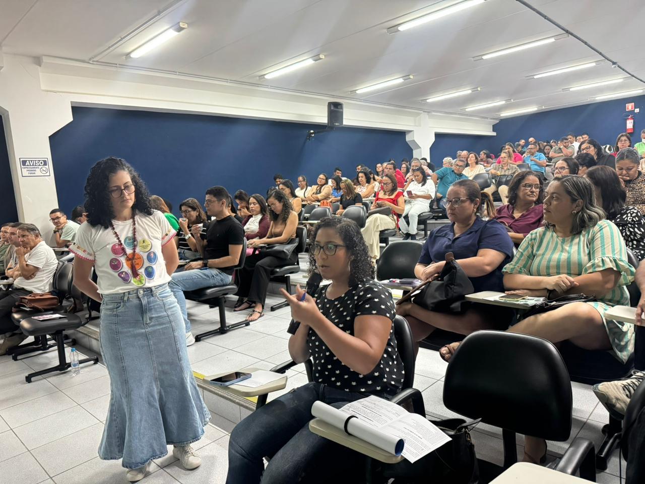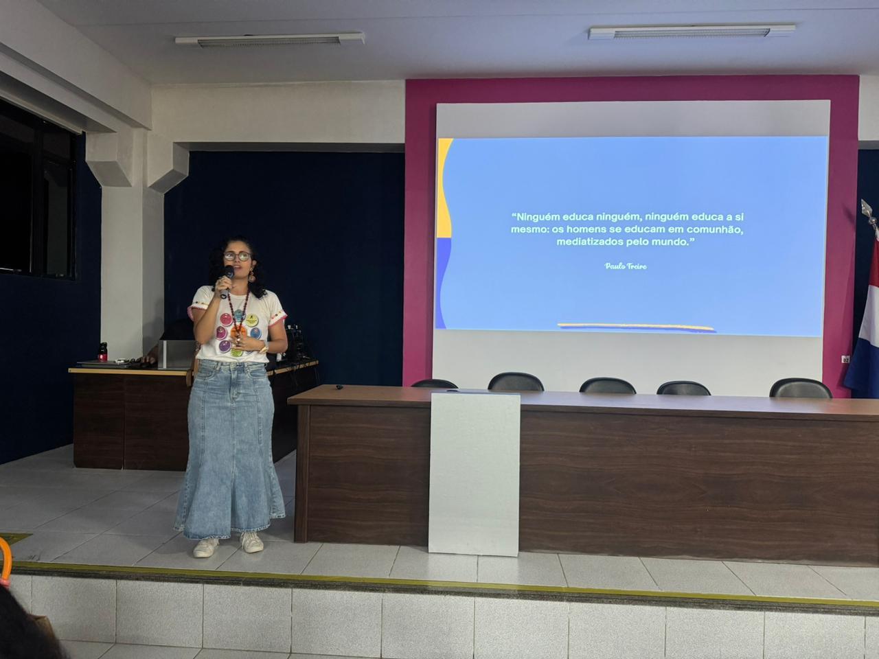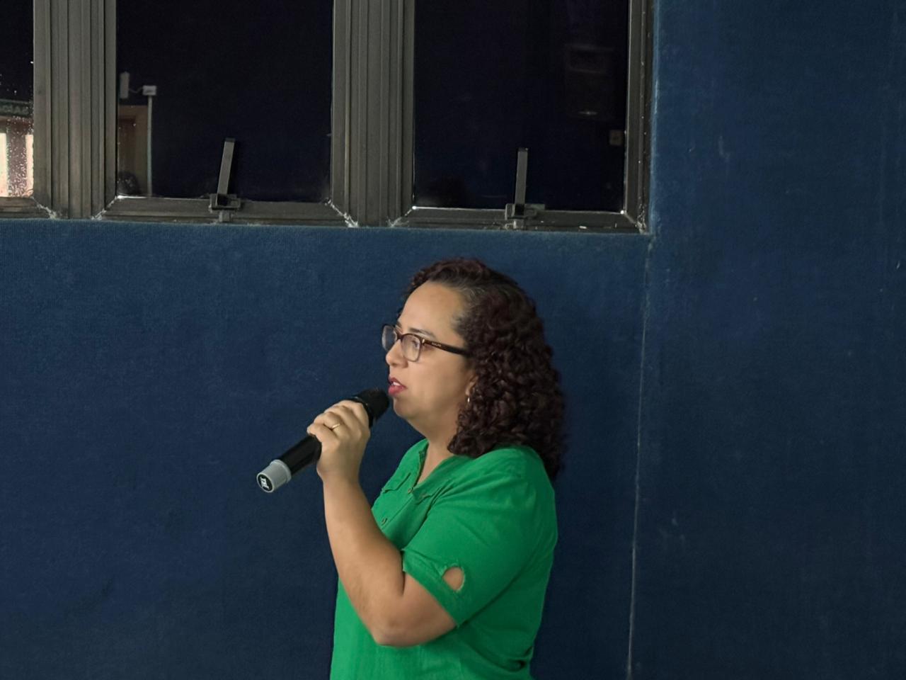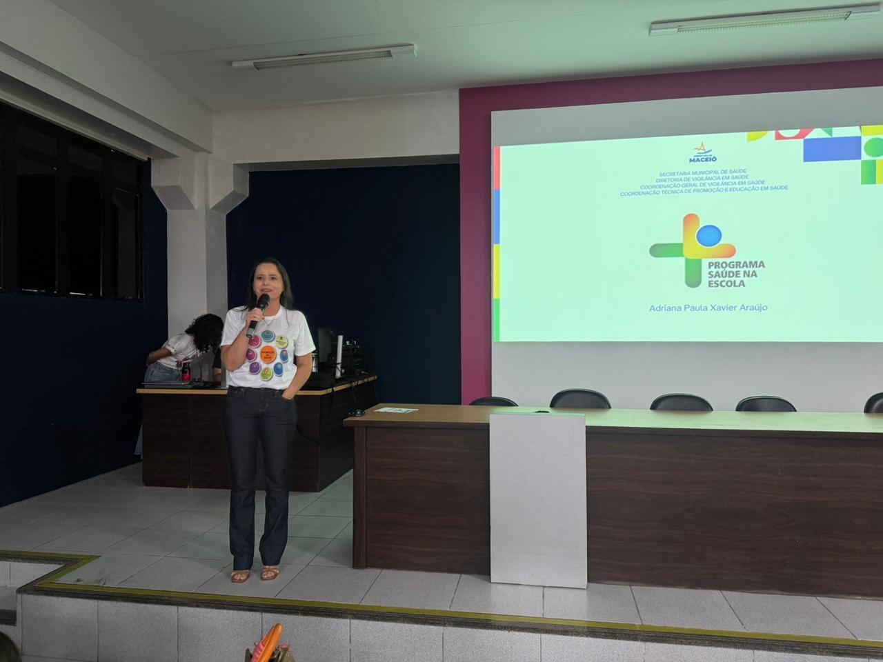 Na sequência, Adriana Paula Xavier apresentou o Programa Saúde na Escola, reforçando sua contribuição para a formação integral dos estudantes por meio de ações de prevenção, promoção e atenção à saúde, além de destacar a articulação entre as redes de saúde e educação, promovida pela integração entre as equipes de atenção básica e as instituições de ensino.