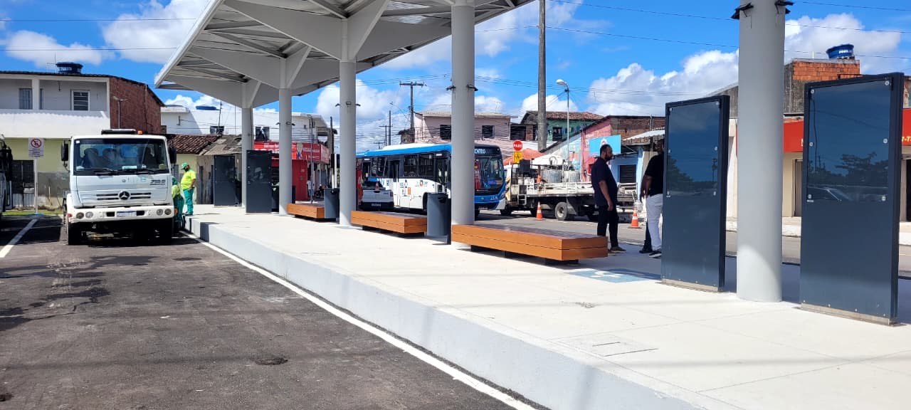 Na gestão do prefeito JHC, o projeto incorporou mobiliário urbano de alto desempenho, com instalação de assentos, lixeiras, paraciclo e rampa de acesso, ampliando as condições de acessibilidade e uso do espaço. Também foi implantada uma área administrativa de apoio à operação, com 87,65 m², composta por banheiro acessível, sala de fiscalização, sala de descanso, almoxarifado, depósito de material de limpeza e copa, estruturando o suporte operacional do terminal. Com essa reforma, o equipamento público passou a garantir mais segurança e conforto no embarque e desembarque, além de fortalecer as atividades comerciais e de serviços no entorno.