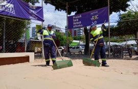 Prefeitura intensifica limpeza de quadras de areia em Maceió