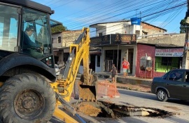 Asfalto cede na Rua Luiz Clemente Vasconcelos, no Clima Bom, e via é interditada